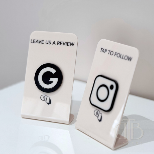 Customisable Social Media Board Sign with two NFC Taps | Beige