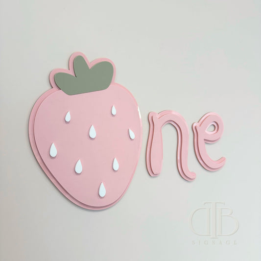 Baby Pink Strawberry ONE Acrylic Signage | Birthday Signage | Berry First Birthday Theme | Double Layer Acrylic