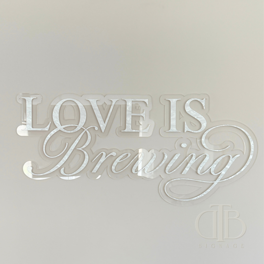 Love is Brewing Acrylic Signage | Bridal Shower | Wedding Signage | Pearl Acrylic Limited Edition | Double Layered Acrylic