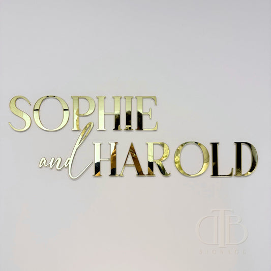 Gold Mirror Acrylic Signage | Name and Name Signage | Wedding Signage | Bridal Signage | Single Layer Acrylic