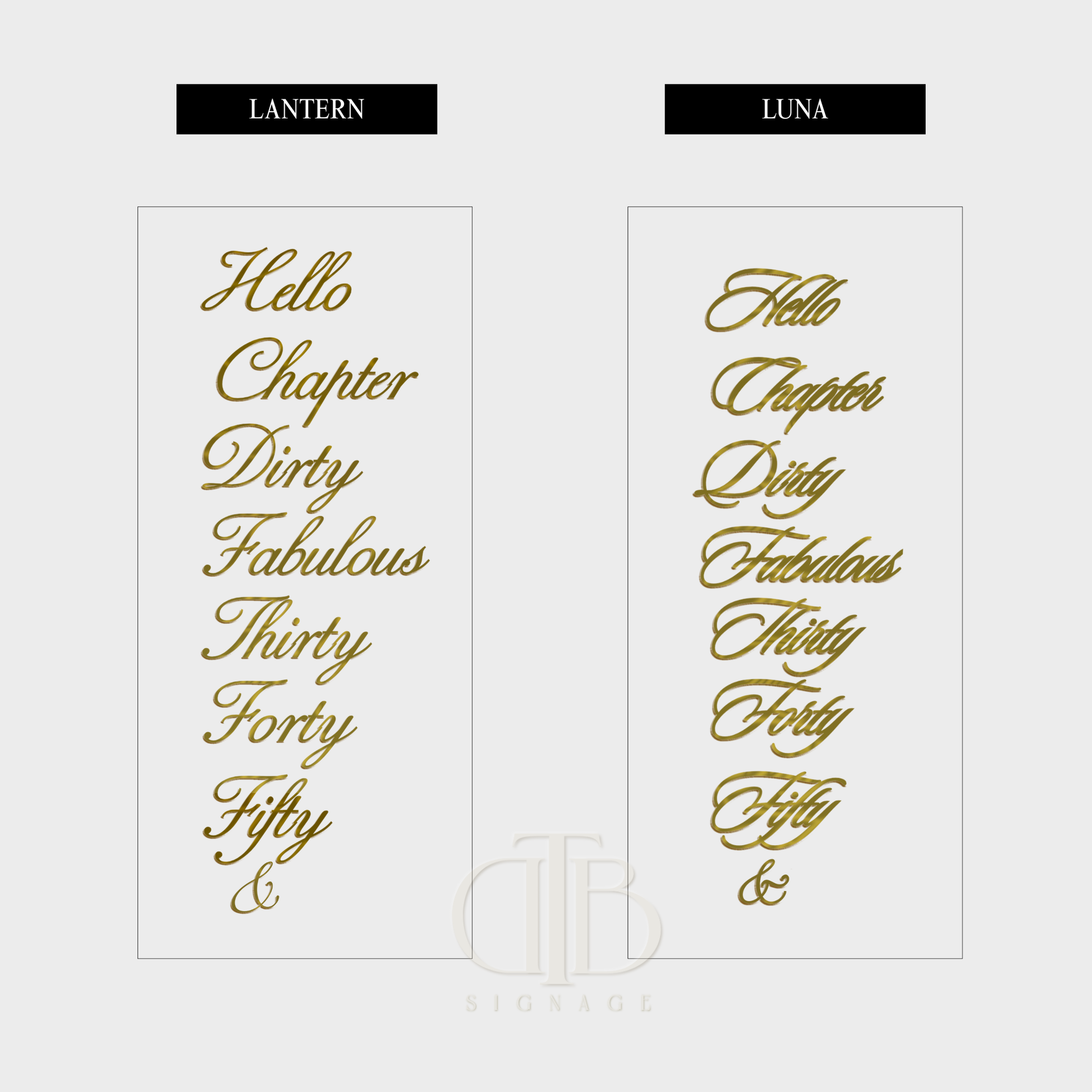 - A selective signage kit designed to cover adult birthday milestones